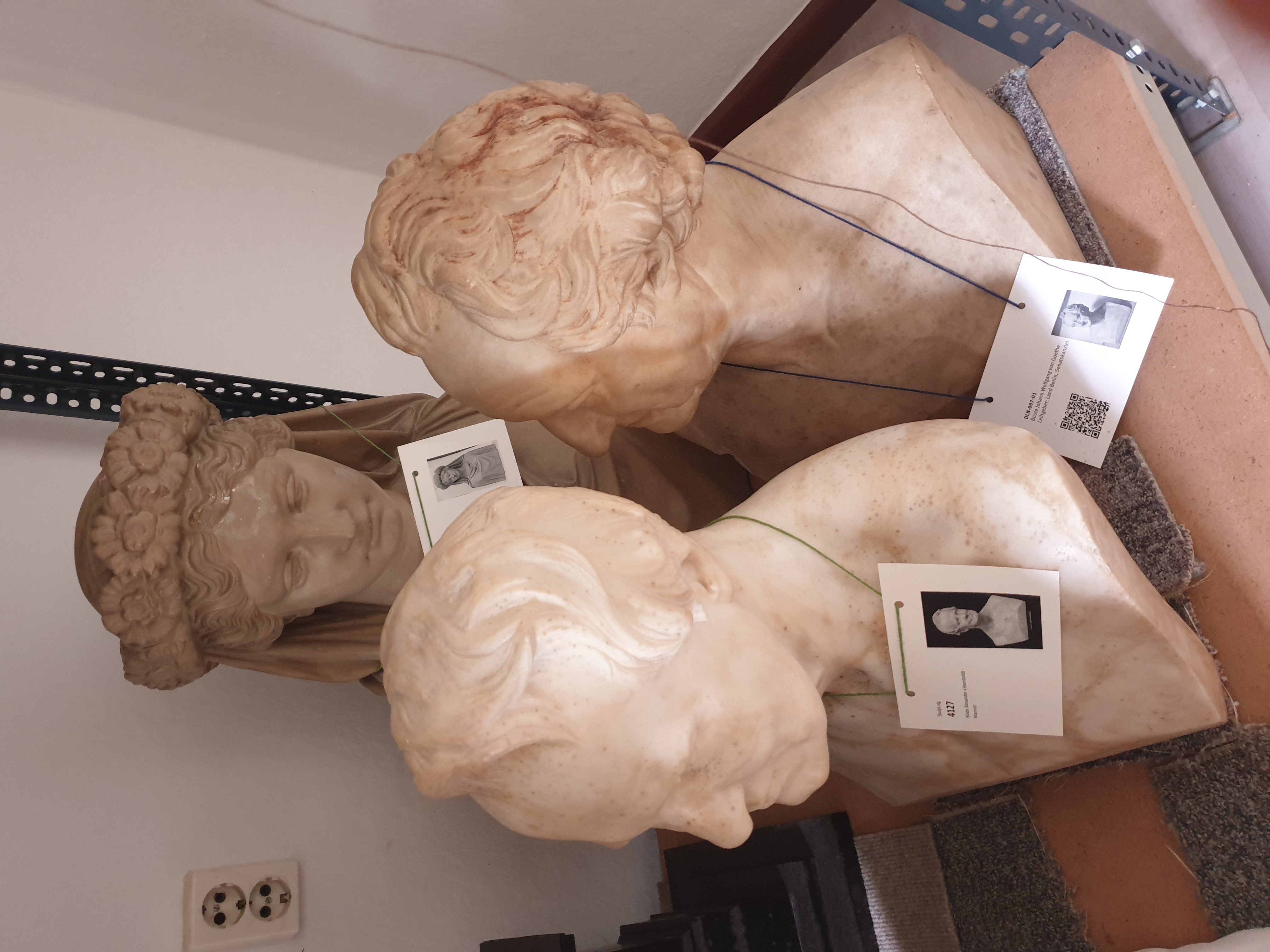Für die Stiftung Preußische Schlösser und Gärten wurden im Orangerieschloss Potsdam umfangreiche Bestände an Büsten, Statuette, Postamente und Ziergegenständen für eine Umlagerung verpackt. Insgesamt umfasste das Projekt 152 Objekte aus Marmor, Gips und Bronze. Der Fokus lag auf einer sicheren sowie wiederverwendbaren Transportverpackung. Vor der Verpackung erfolgte eine Reinigung mit Pinsel und H-Sauger. Aufgrund von Schimmel und Bleibelastung der aufliegende Stäube mussten besondere Anforderungen an die Arbeitssicherhet (PSA) beachtet werden.